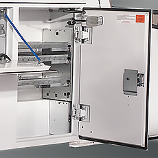 All vertical compartment doors are equipped with nitrogen gas strut door holders. Struts hold the doors in the open position and provide a smooth, controlled motion on close, to prevent overslam and body damage.