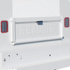 The iconic Reading tailgate is easy to open and shut with a pickup-style latch and slam-action closure, and includes a Stainless Steel polished handle on Classic II. Tailgate is 14″ tall with a treadplate working surface, to provide sure-footed access to the loadspace. The latching hardware is stainless steel — knee braces, locking rods, hinge rods and striker channels. Knee braces are removable and protect against rust and corrosion while allowing the tailgate to swing down completely.