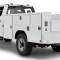The frame-mounted recessed bumper creates an additional degree of sturdiness when loading and unloading, and the pooched anti-slip surface helps increase the safety of the service body by adding more steady space to work on. The bumpers have LED lights included to maintain high levels of visibility.